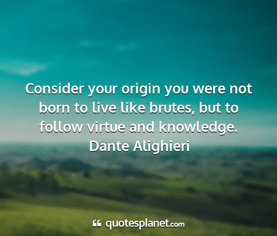Consider your origin you were not born to live like brutes, but to follow virtue and knowledge.Dante Alighieri