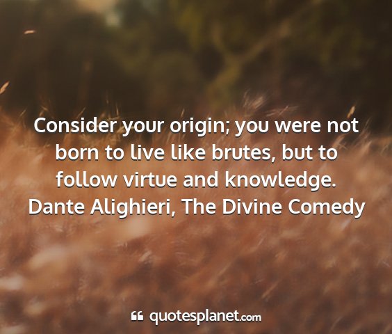 Consider your origin; you were not born to live like brutes, but to follow virtue and knowledge.Dante Alighieri, The Divine Comedy