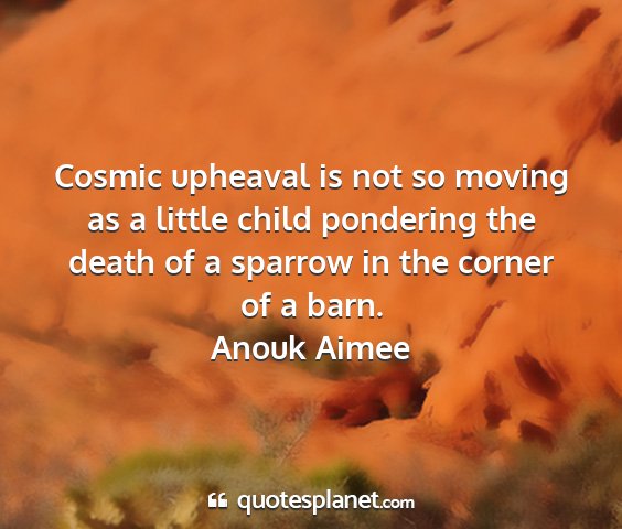 Cosmic upheaval is not so moving as a little child pondering the death of a sparrow in the corner of a barn.Anouk Aimee