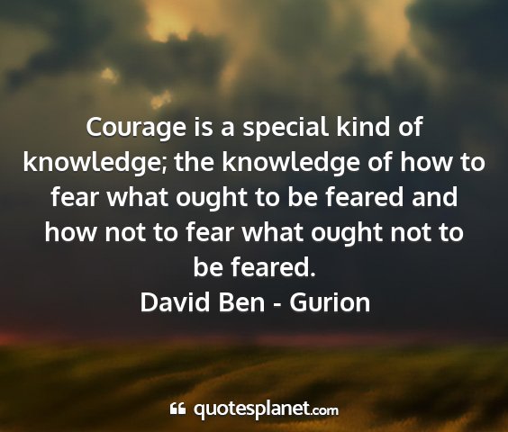 Courage is a special kind of knowledge; the knowledge of how to fear what ought to be feared and how not to fear what ought not to be feared.David Ben - Gurion