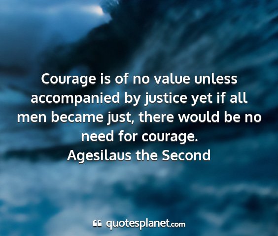 Courage is of no value unless accompanied by justice yet if all men became just, there would be no need for courage.Agesilaus the Second