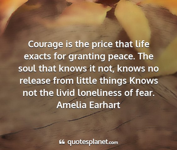 Courage is the price that life exacts for granting peace. The soul that knows it not, knows no release from little things Knows not the livid loneliness of fear.Amelia Earhart
