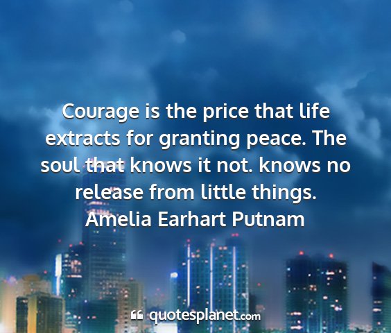 Courage is the price that life extracts for granting peace. The soul that knows it not. knows no release from little things.Amelia Earhart Putnam
