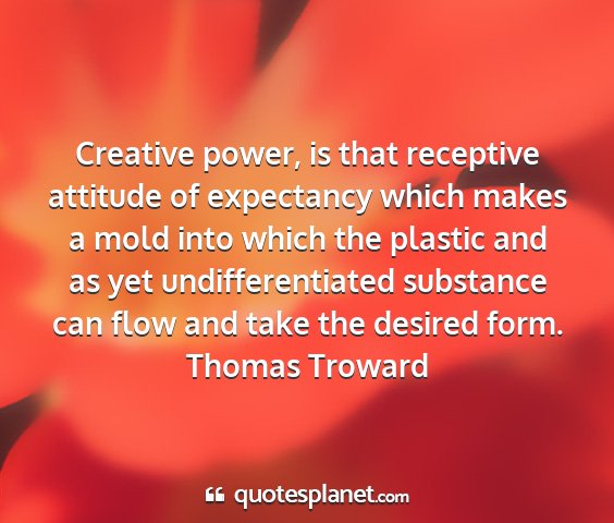 Creative power, is that receptive attitude of expectancy which makes a mold into which the plastic and as yet undifferentiated substance can flow and take the desired form.Thomas Troward