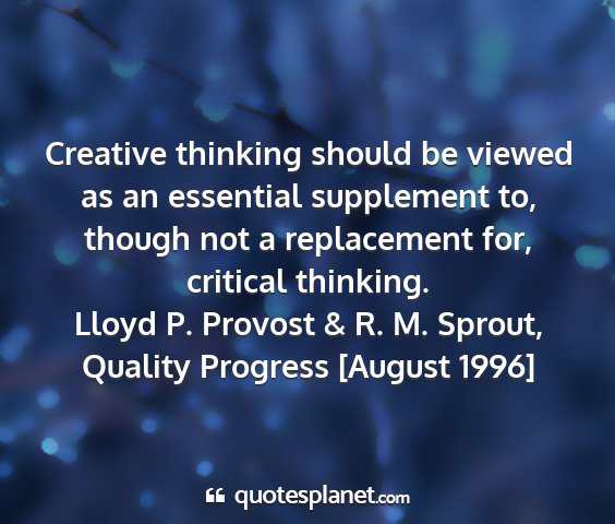 Creative thinking should be viewed as an essential supplement to, though not a replacement for, critical thinking.Lloyd P. Provost & R. M. Sprout, Quality Progress [August 1996]