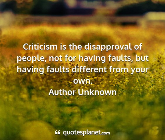 Criticism is the disapproval of people, not for having faults, but having faults different from your own.Author Unknown