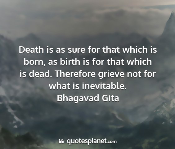 Death is as sure for that which is born, as birth is for that which is dead. Therefore grieve not for what is inevitable.Bhagavad Gita