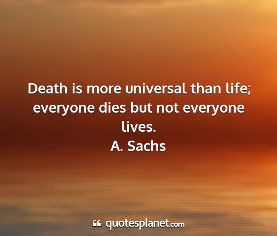Death is more universal than life; everyone dies but not everyone lives.