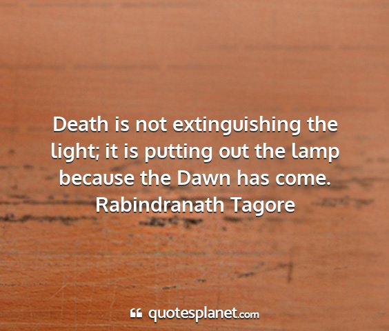 Death is not extinguishing the light; it is putting out the lamp because the Dawn has come.Rabindranath Tagore