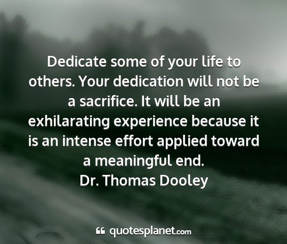Dedicate some of your life to others. Your dedication will not be a sacrifice. It will be an exhilarating experience because it is an intense effort applied toward a meaningful end.Dr. Thomas Dooley