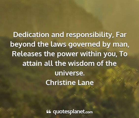Dedication and responsibility, Far beyond the laws governed by man, Releases the power within you, To attain all the wisdom of the universe.Christine Lane