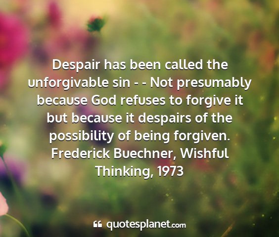 Despair has been called the unforgivable sin - - Not presumably because God refuses to forgive it but because it despairs of the possibility of being forgiven.Frederick Buechner, Wishful Thinking, 1973