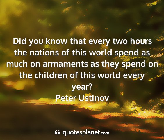 Did you know that every two hours the nations of this world spend as much on armaments as they spend on the children of this world every year?Peter Ustinov