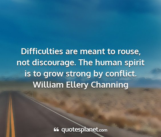 Difficulties are meant to rouse, not discourage. The human spirit is to grow strong by conflict.William Ellery Channing