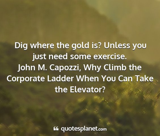 Dig where the gold is? Unless you just need some exercise.John M. Capozzi, Why Climb the Corporate Ladder When You Can Take the Elevator?