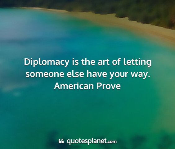 Diplomacy is the art of letting someone else have your way.