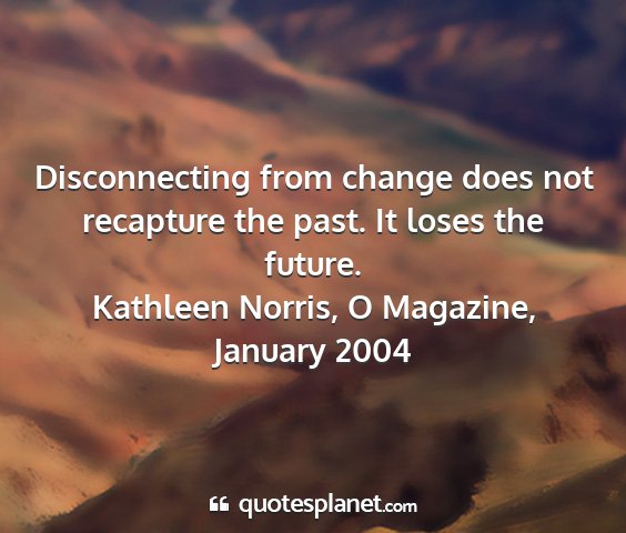 Disconnecting from change does not recapture the past. It loses the future.Kathleen Norris, O Magazine, January 2004