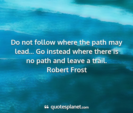Do not follow where the path may lead... Go instead where there is no path and leave a trail.Robert Frost