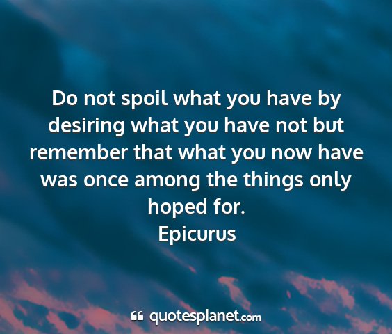 Do not spoil what you have by desiring what you have not but remember that what you now have was once among the things only hoped for.Epicurus