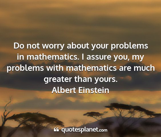 Do not worry about your problems in mathematics. I assure you, my problems with mathematics are much greater than yours.Albert Einstein