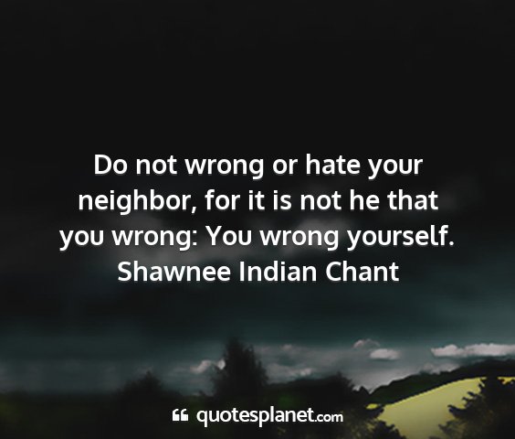 Do not wrong or hate your neighbor, for it is not he that you wrong: You wrong yourself.Shawnee Indian Chant