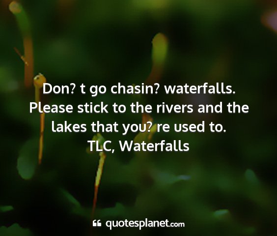 Don? t go chasin? waterfalls. Please stick to the rivers and the lakes that you? re used to.TLC, Waterfalls