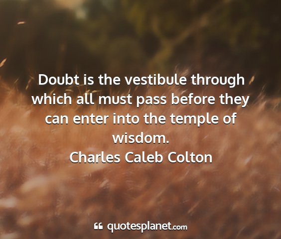 Doubt is the vestibule through which all must pass before they can enter into the temple of wisdom.Charles Caleb Colton