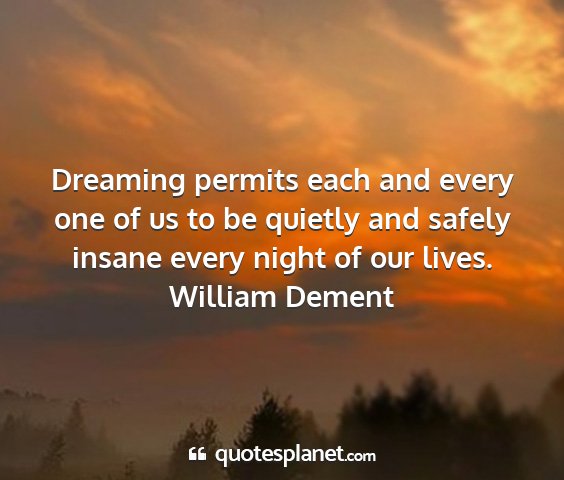 Dreaming permits each and every one of us to be quietly and safely insane every night of our lives.William Dement