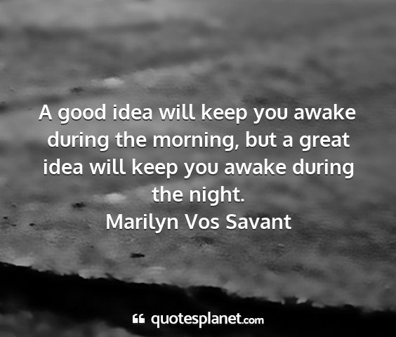 A good idea will keep you awake during the morning, but a great idea will keep you awake during the night.Marilyn Vos Savant