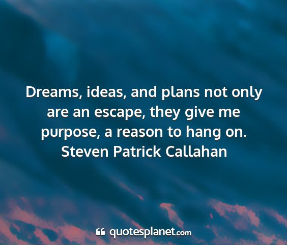 Dreams, ideas, and plans not only are an escape, they give me purpose, a reason to hang on.Steven Patrick Callahan