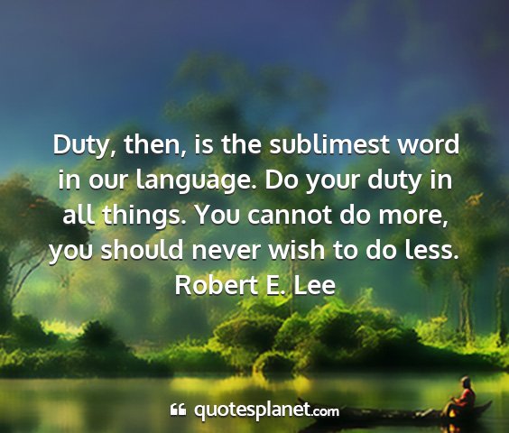 Duty, then, is the sublimest word in our language. Do your duty in all things. You cannot do more, you should never wish to do less.Robert E. Lee