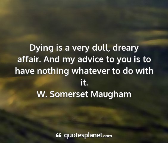 Dying is a very dull, dreary affair. And my advice to you is to have nothing whatever to do with it.W. Somerset Maugham
