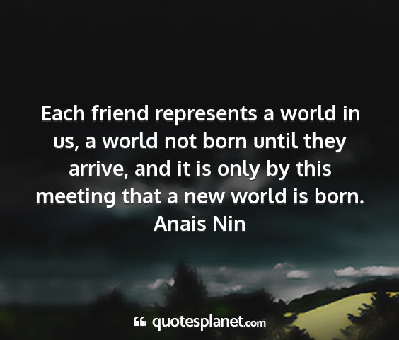 Each friend represents a world in us, a world not born until they arrive, and it is only by this meeting that a new world is born.Anais Nin