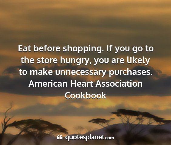 Eat before shopping. If you go to the store hungry, you are likely to make unnecessary purchases.American Heart Association Cookbook