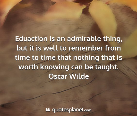 Eduaction is an admirable thing, but it is well to remember from time to time that nothing that is worth knowing can be taught.Oscar Wilde