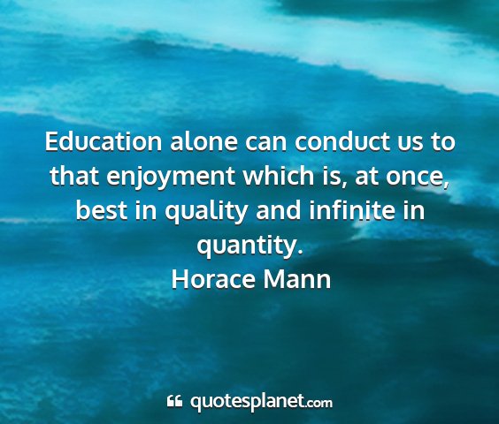 Education alone can conduct us to that enjoyment which is, at once, best in quality and infinite in quantity.Horace Mann