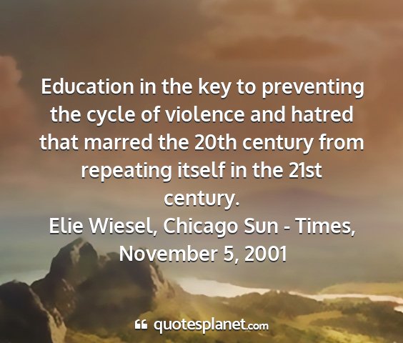 Education in the key to preventing the cycle of violence and hatred that marred the 20th century from repeating itself in the 21st century.Elie Wiesel, Chicago Sun - Times, November 5, 2001