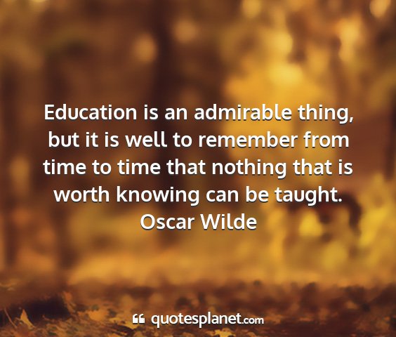 Education is an admirable thing, but it is well to remember from time to time that nothing that is worth knowing can be taught.Oscar Wilde