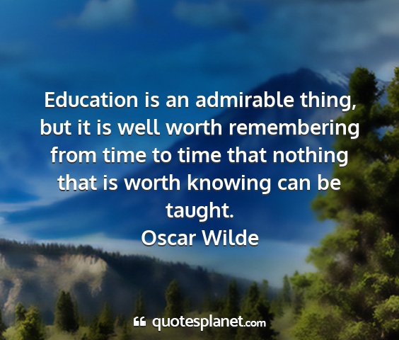 Education is an admirable thing, but it is well worth remembering from time to time that nothing that is worth knowing can be taught.Oscar Wilde