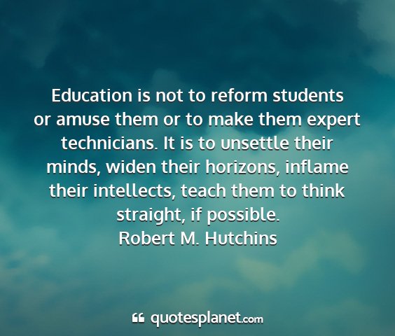 Education is not to reform students or amuse them or to make them expert technicians. It is to unsettle their minds, widen their horizons, inflame their intellects, teach them to think straight, if possible.Robert M. Hutchins