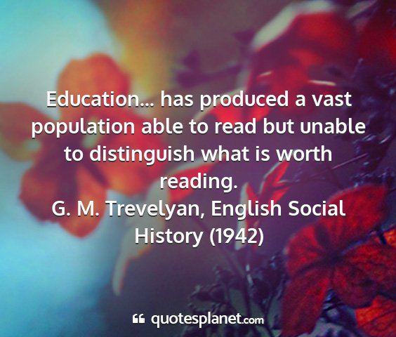 Education... has produced a vast population able to read but unable to distinguish what is worth reading.G. M. Trevelyan, English Social History (1942)