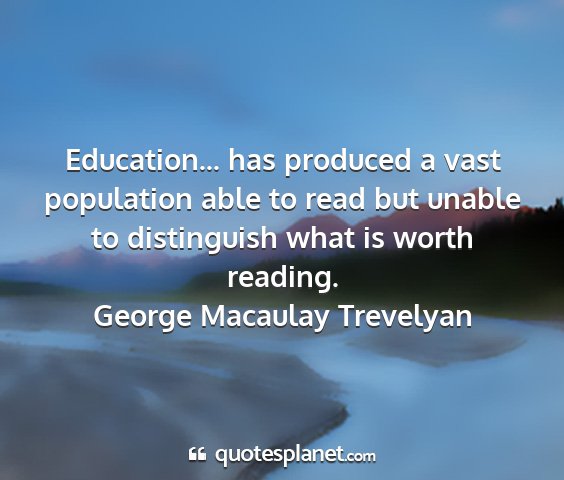 Education... has produced a vast population able to read but unable to distinguish what is worth reading.George Macaulay Trevelyan