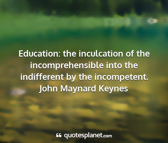 Education: the inculcation of the incomprehensible into the indifferent by the incompetent.John Maynard Keynes
