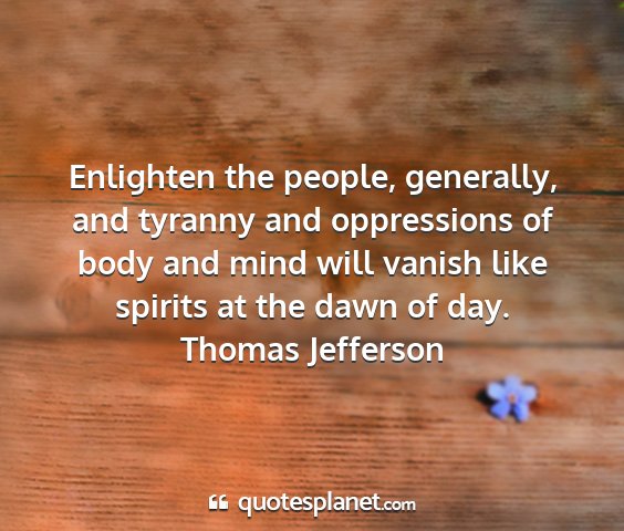Enlighten the people, generally, and tyranny and oppressions of body and mind will vanish like spirits at the dawn of day.Thomas Jefferson