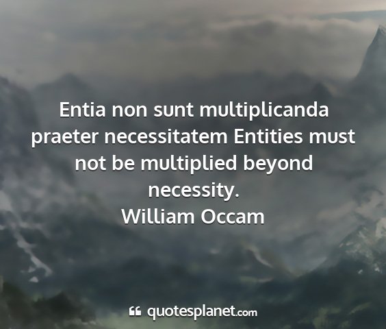 Entia non sunt multiplicanda praeter necessitatem Entities must not be multiplied beyond necessity.William Occam
