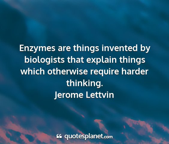 Enzymes are things invented by biologists that explain things which otherwise require harder thinking.Jerome Lettvin