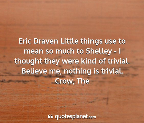 Eric Draven Little things use to mean so much to Shelley - I thought they were kind of trivial. Believe me, nothing is trivial.Crow, The