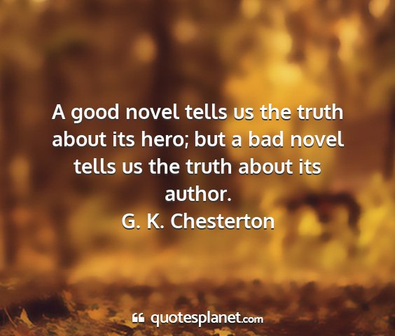 A good novel tells us the truth about its hero; but a bad novel tells us the truth about its author.G. K. Chesterton