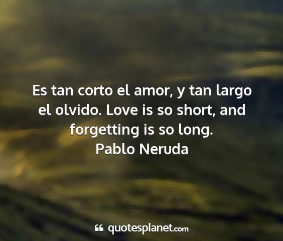 Es tan corto el amor, y tan largo el olvido. Love is so short, and forgetting is so long.Pablo Neruda
