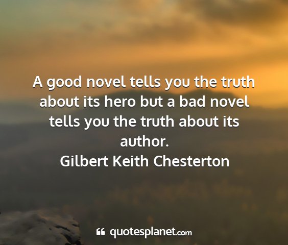 A good novel tells you the truth about its hero but a bad novel tells you the truth about its author.Gilbert Keith Chesterton